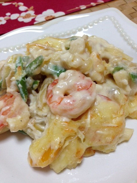 幸せのお母さんグラタン。なんか子どもの頃食べたグラタンと同じ匂いがする!!!なんで!!!???