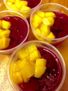 今週末、ハピナハ ぺんぎん食堂デリで販売は、宮古島マンゴーと糸満ドラゴンフルーツのゼリー(≧∇≦)美しくできました*\(^o^)/*